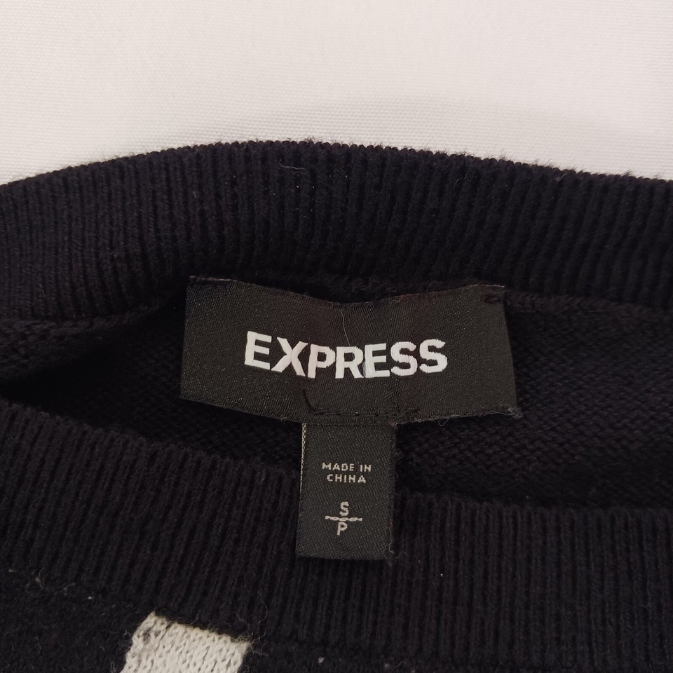 Elevate your casual wardrobe with this stylish black and white knit sweater from Express. This classic pullover top features a crew neck and short sleeves, making it perfect for travel or everyday wear. The tight-knit pattern and breathable fabric make it a versatile piece for all seasons.