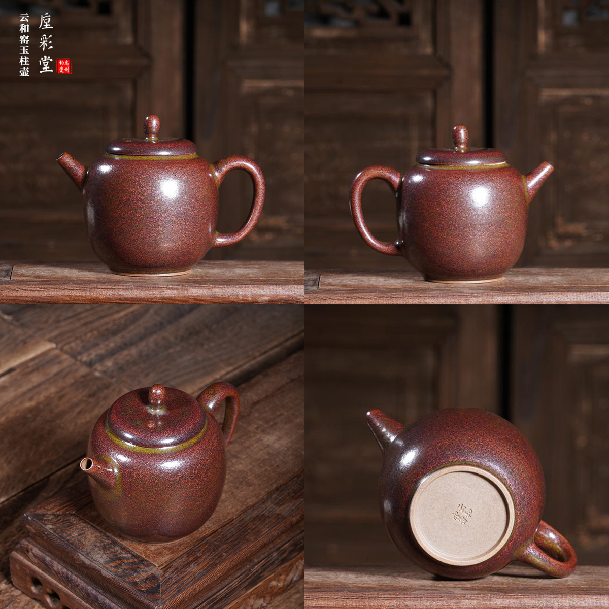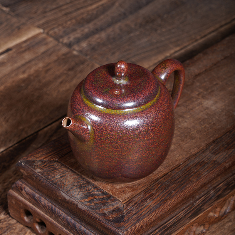 Its opalescent glaze and unpredictable kiln transformation (the core of Jun’s beauty) create dynamic, lustrous effects—this teapot features a rich reddish-brown glaze with subtle speckles, formed by the glaze’s natural flow at high temperatures.