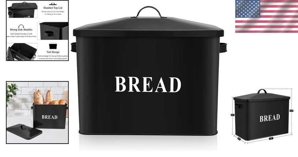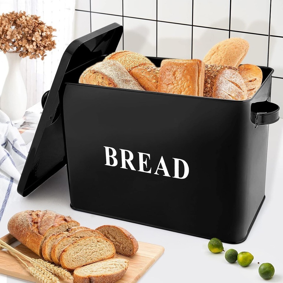 - Extra Large Black Metal Bread Box - Rustic Farmhouse Kitchen Storage Solution
