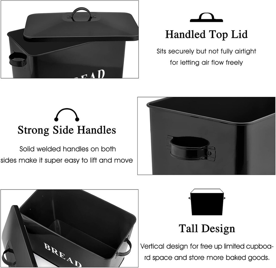 Don?t wait to transform your kitchen ? order your Extra Large Black Metal Bread Box today and experience convenience wrapped in style!