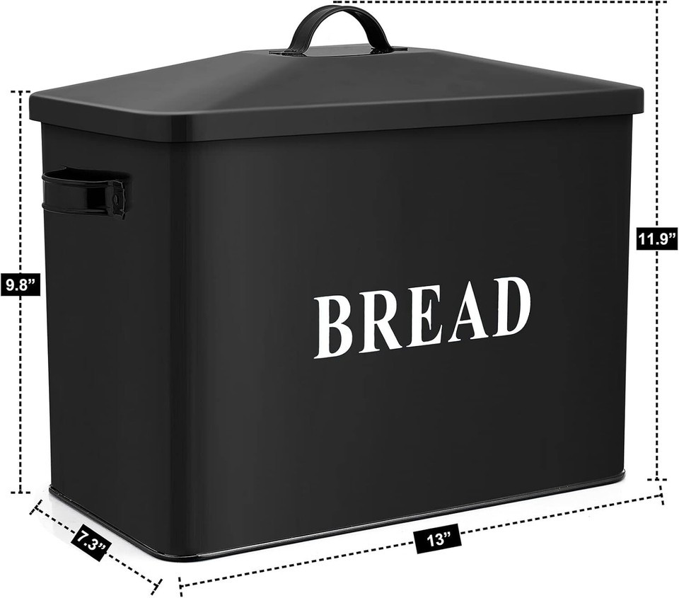 Dimensions: 13 x 9.8 x 7.3 inches, large enough to hold two full loaves of bread with extra space to spare.