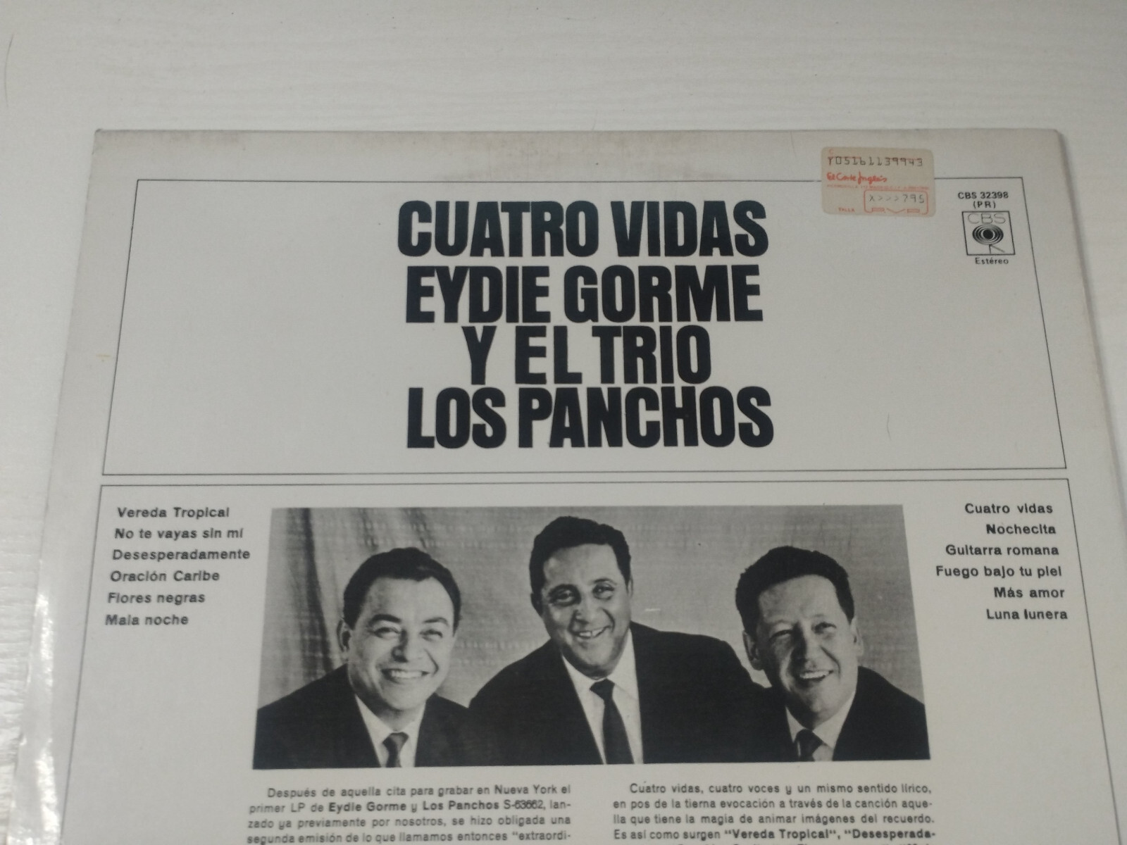 Eydie Gorme Y El Trio Los Panchos Cuatro Vidas CBS 32398 - LP Vinyl 12" VG+/VG+