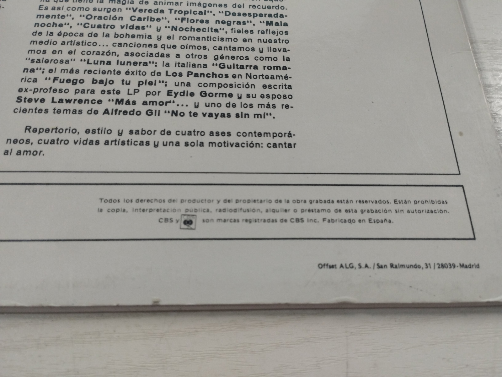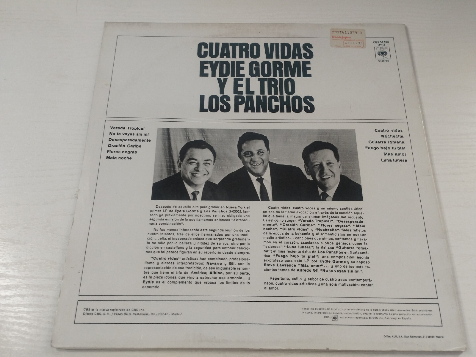 Eydie Gorme And El Trio Los Panchos Cuatro Vidas CBS 32398 LP Vinyl 12" VG/VG 3T