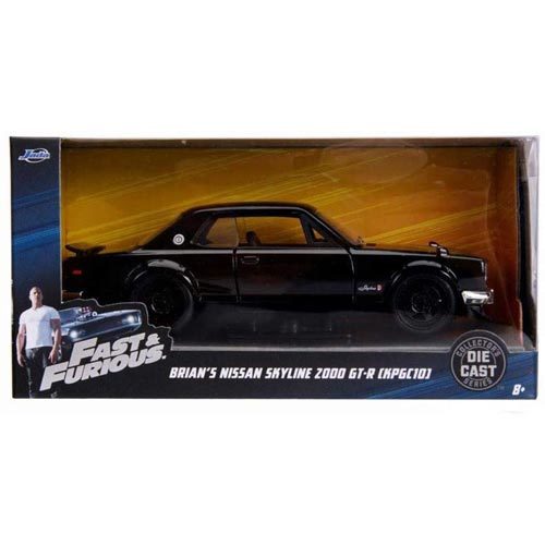 About this item Authentically licensed product from the Fast Furious Saga. As seen in Fast 5, Brian's 1971 Nissan Skyline 2000 GT-R(KPGC10) has been taken directly from the big screen and brought to you in a 1:32 scale die - cast model Crafted from durable materials such as 100% die - cast metal and premium rubber tires. Our superior casting method allows us to capture the feature rich details of the Brian's 1971 Nissan Skyline 2000 GT-R, regardless of size! This premium die - cast model is a must have for any Fast Furious collection