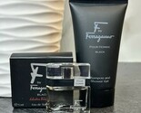 F by Ferragamo Black EDT Gift Set .17 oz Mini Splash 2.5 oz Shampoo Shower Gel.