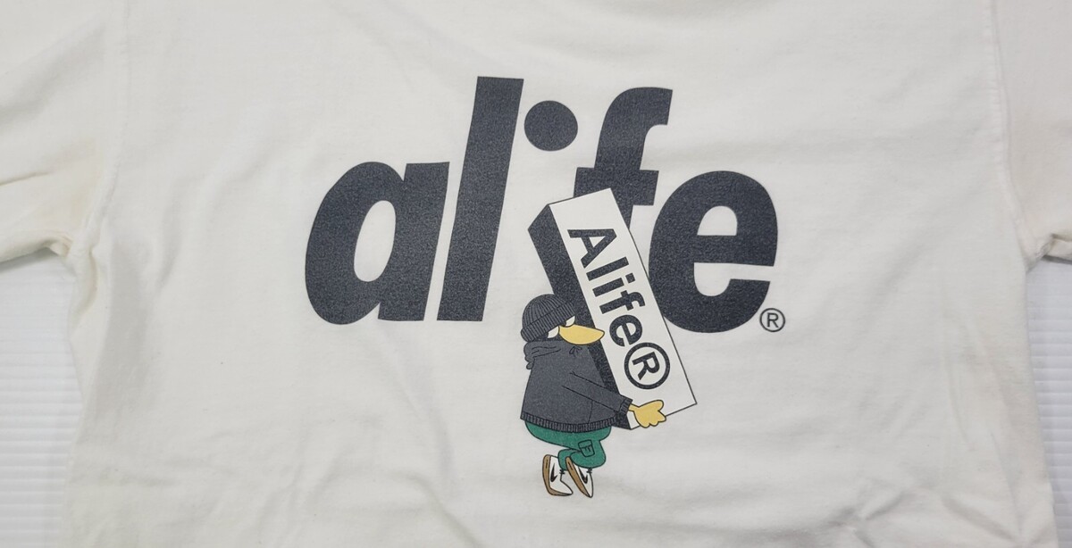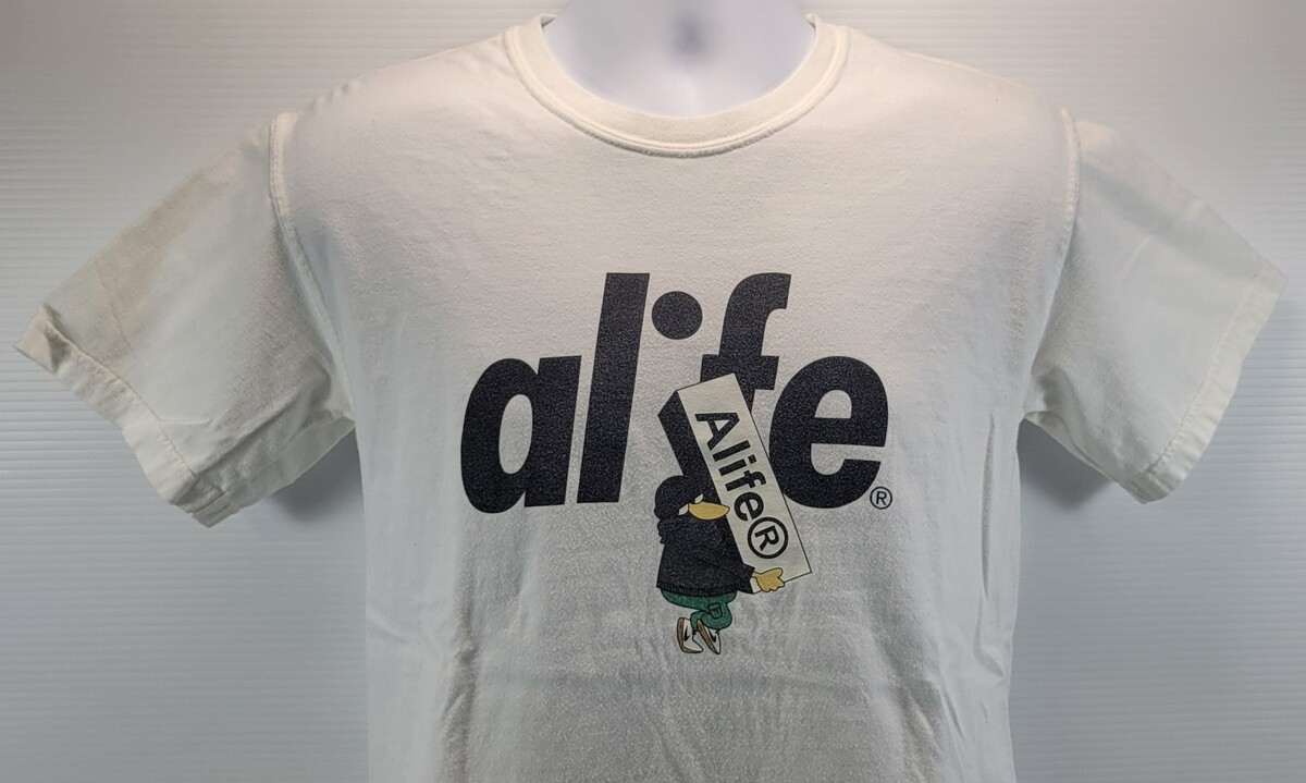 F1) Alife Boostin Men Streetwear Graphic White Cotton Small T-Shirt