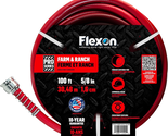 The Flexon Farm and Ranch Garden Hoses are built for heavy-duty performance in demanding outdoor environments. This 100-foot, 5/8-inch diameter hose is crafted with durable, kink-resistant materials to ensure a steady water flow for farm, ranch, and large-area watering needs. Its reinforced couplings provide a secure, leak-proof connection, while the high-visibility red color makes it easy to spot. Perfect for watering livestock, cleaning equipment, and heavy-duty tasks, this rugged, long-lasting hose is a must-have for any farm or ranch. Upgrade your outdoor tools today!
