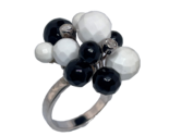 estate ring in sterling silver set with faceted porcelain balls and rock crystal quartz.