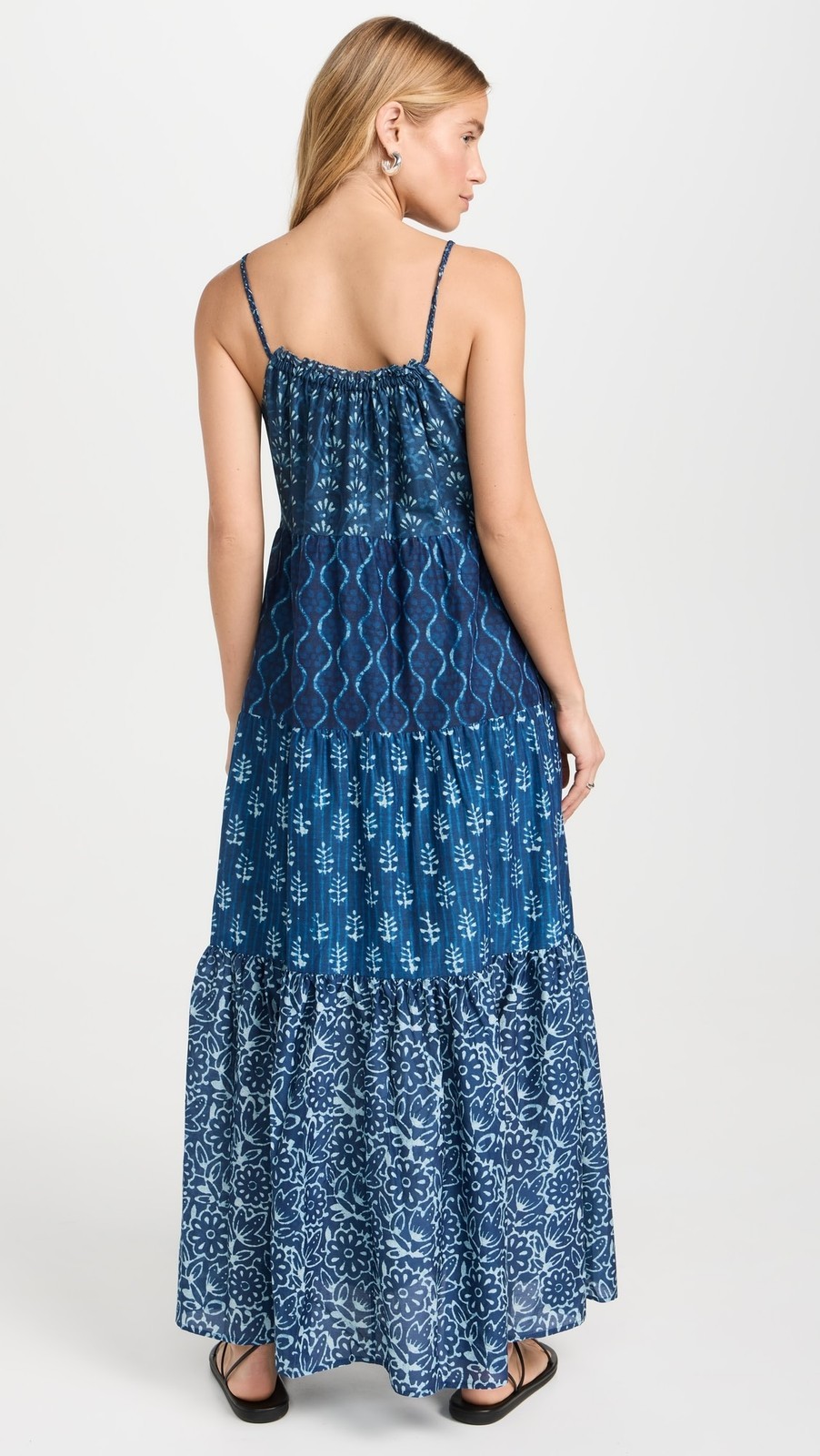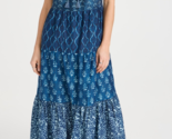 FAHERTY silk blend sun chaser tiered maxi dress blue floral sunburst mix XS New
