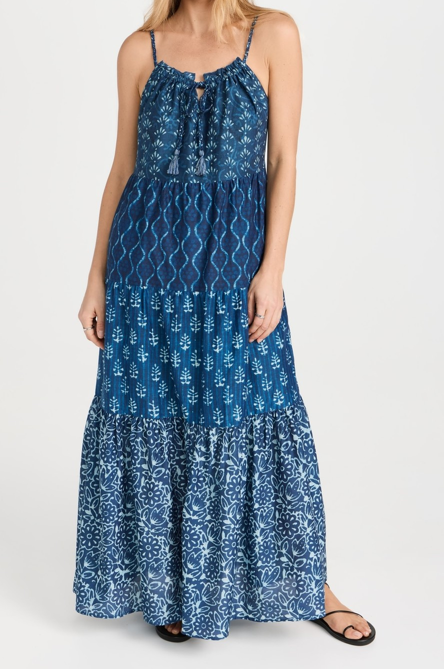visual intrigue on a flowy sundress fashioned with voluminous tiers and