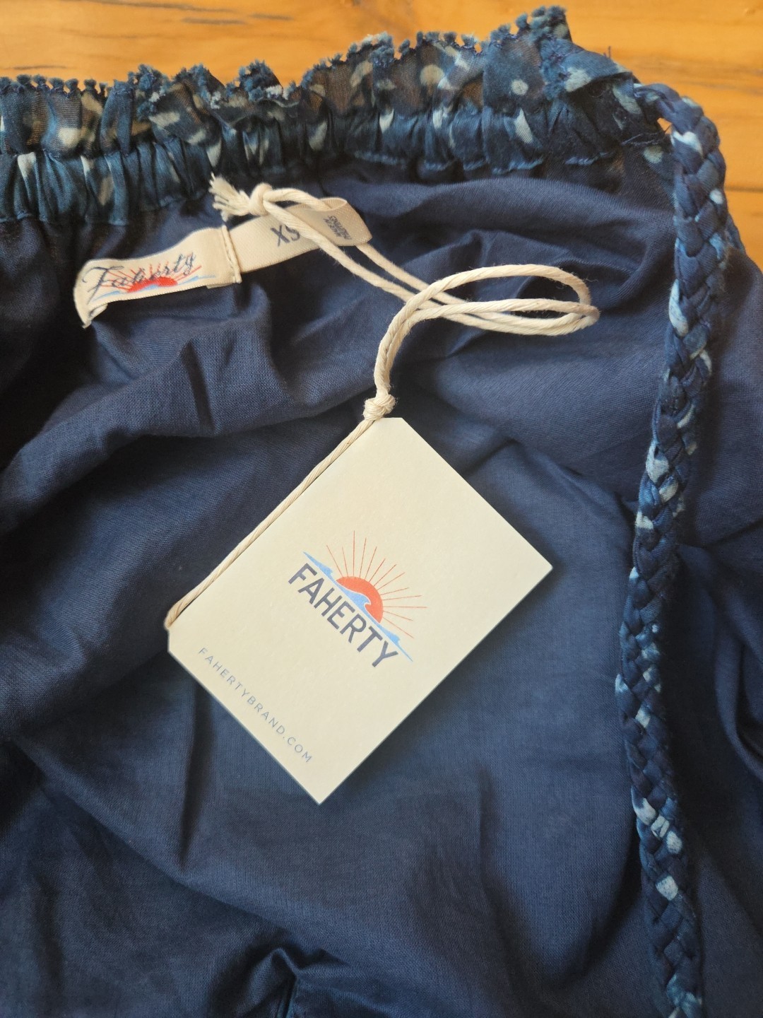 - FAHERTY silk blend sun chaser tiered maxi dress blue floral sunburst mix XS New