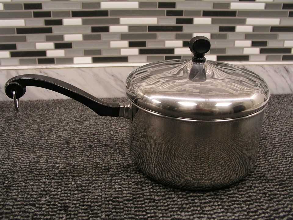 - FARBERWARE Aluminum Clad Stainless Steel 3 Quart Sauce Pan with Lid.
