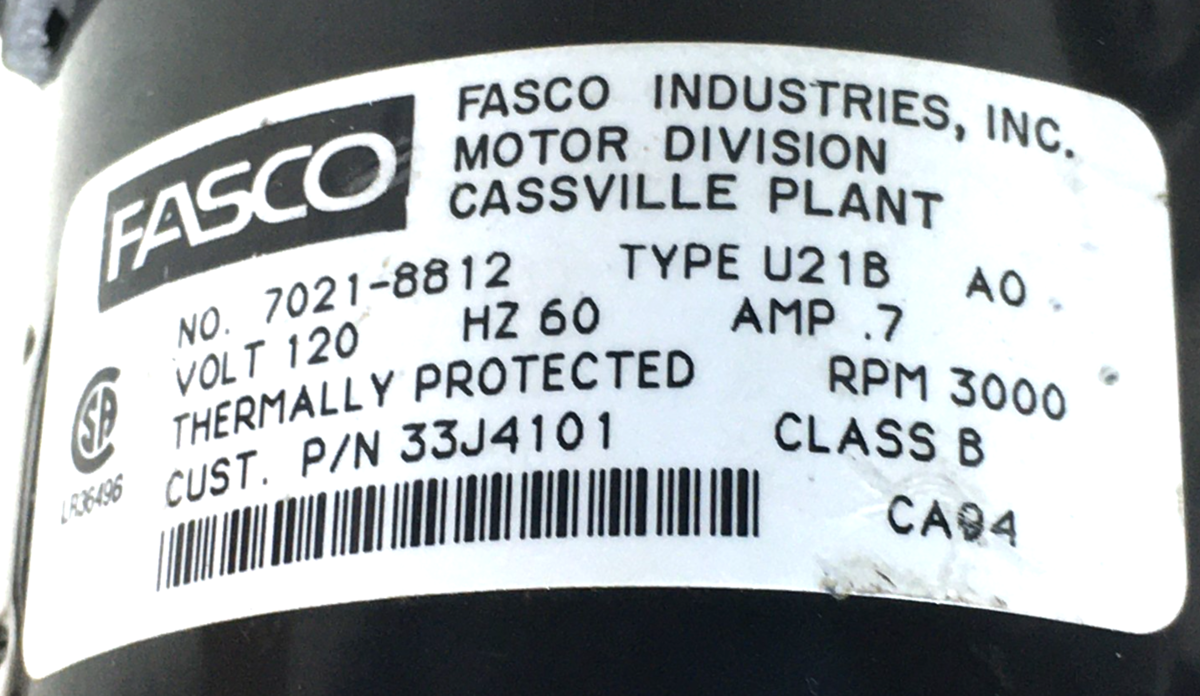 This is FASCO 7021-8812 Draft Inducer Blower Motor Lennox 33J4101 120V 3000 RPM used part.