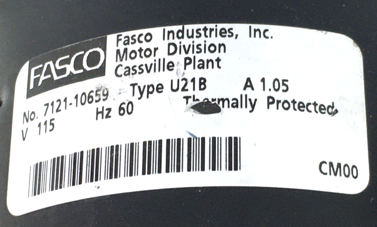 This is FASCO 7121-10659 Draft Inducer Blower Motor Assembly U21B 115V used part.