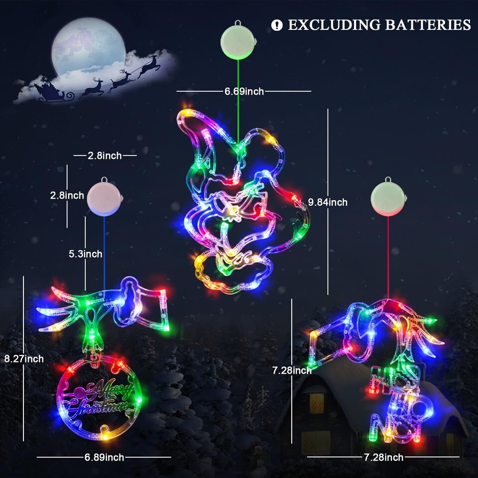 FASISOY 3 Pack Multi-Color Christmas Window Lights Battery Operated Timer