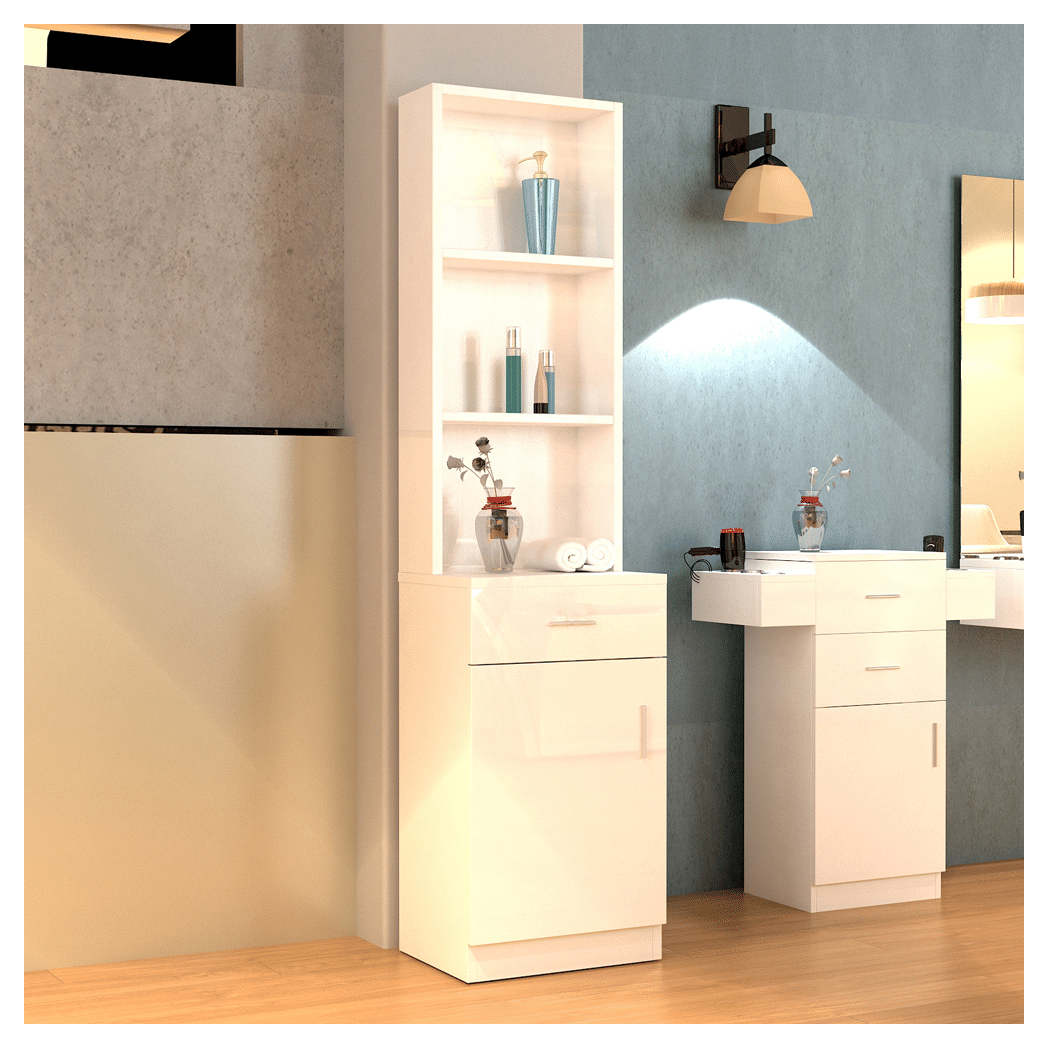- FCH Standing 5 Compartments 1 Drawer 1 Door MDF Barber Cabinet White