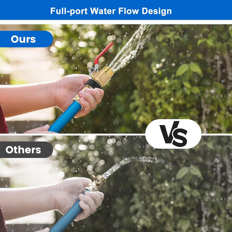?FLOW CONTROL? Smooth quarter-turn ball valve operation provides quick and precise water flow adjustment from full flow to complete shutoff.