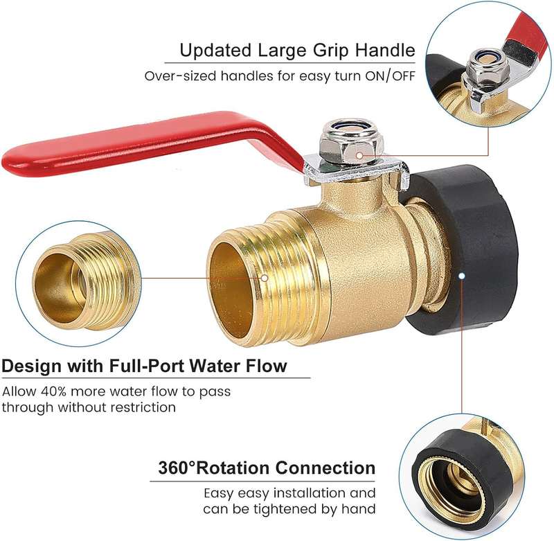 ?BIG BALL VALVE SWITCH?The full port design Increase water inlet and outlet, which allow for a higher water flow rate.