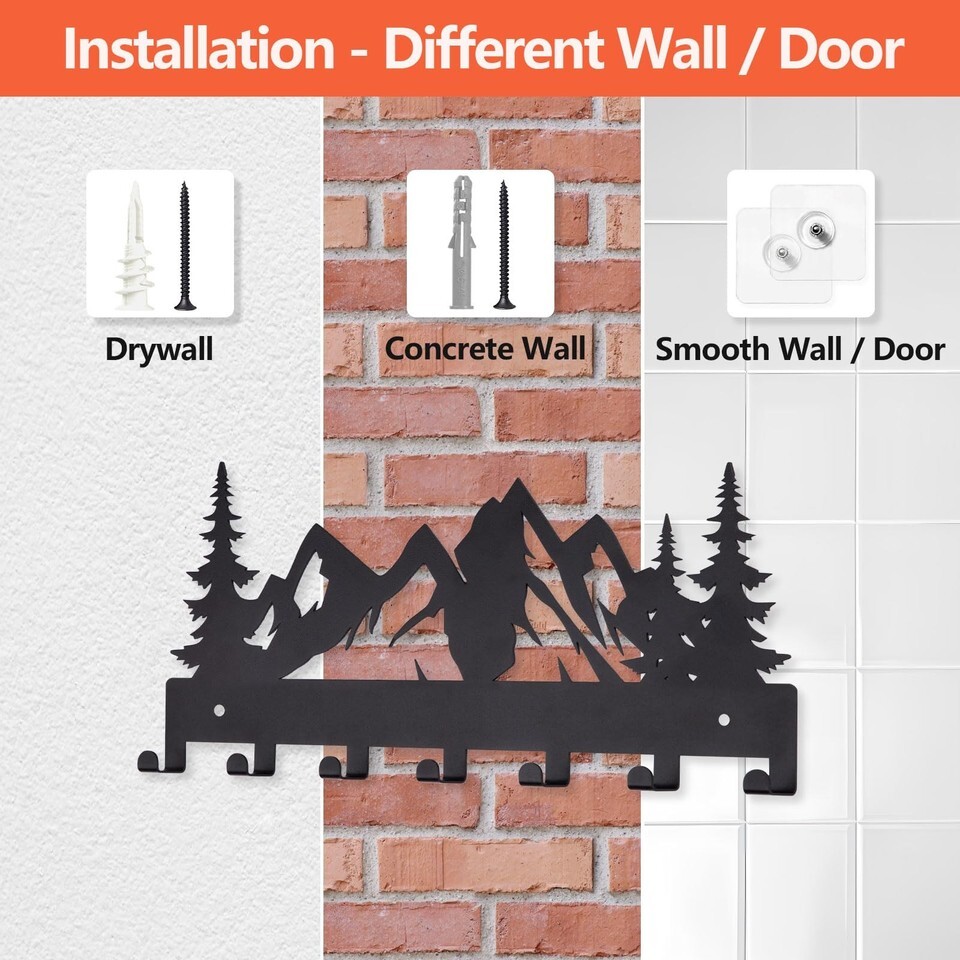 Easy to Install Entryway key holder for wall package includes 2* concrete anchor, 2* drywall anchor, 2* screw and 2* punch-free screw sticker. The keys hanger for wall is easy to install by following the installation steps in the instructions.