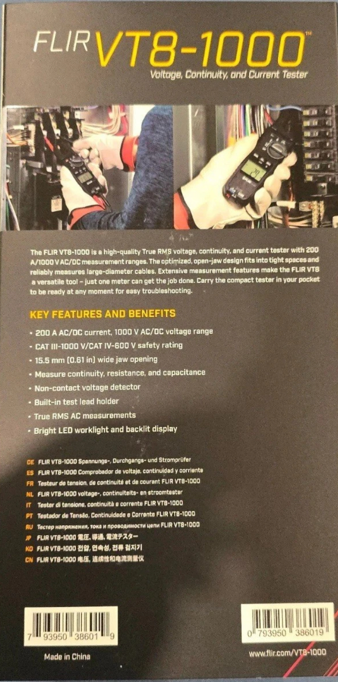FLIR VT8-1000 - Voltage, Continuity and Current Tester - 1000V/200A w/Open Jaw