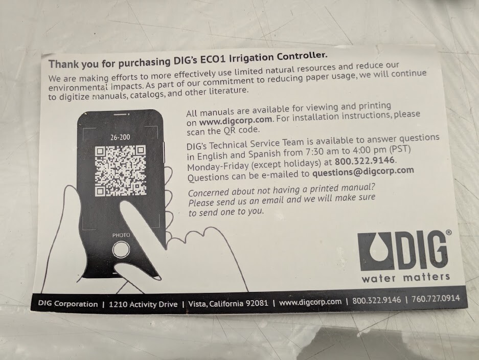 FOR PARTS - Controller - DIG ECO1 ASV Ambient Light (Solar) Powered Irrigation