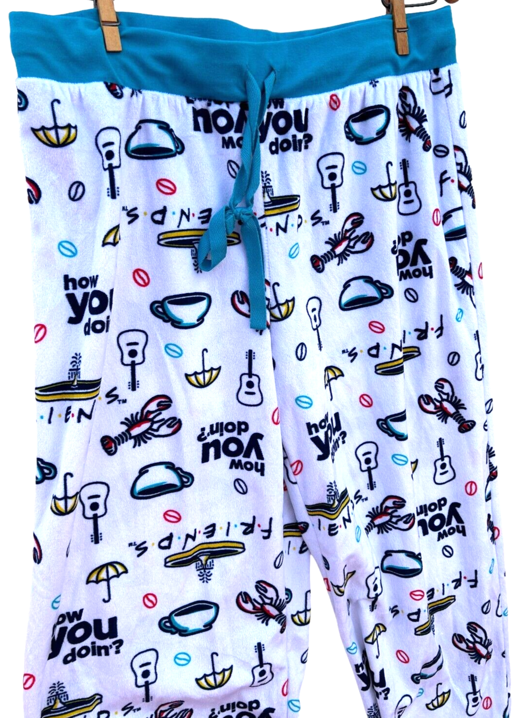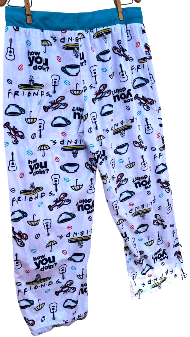 - FRIENDS TV Sitcom Pajama Pants Sleep Womens XL size white blue