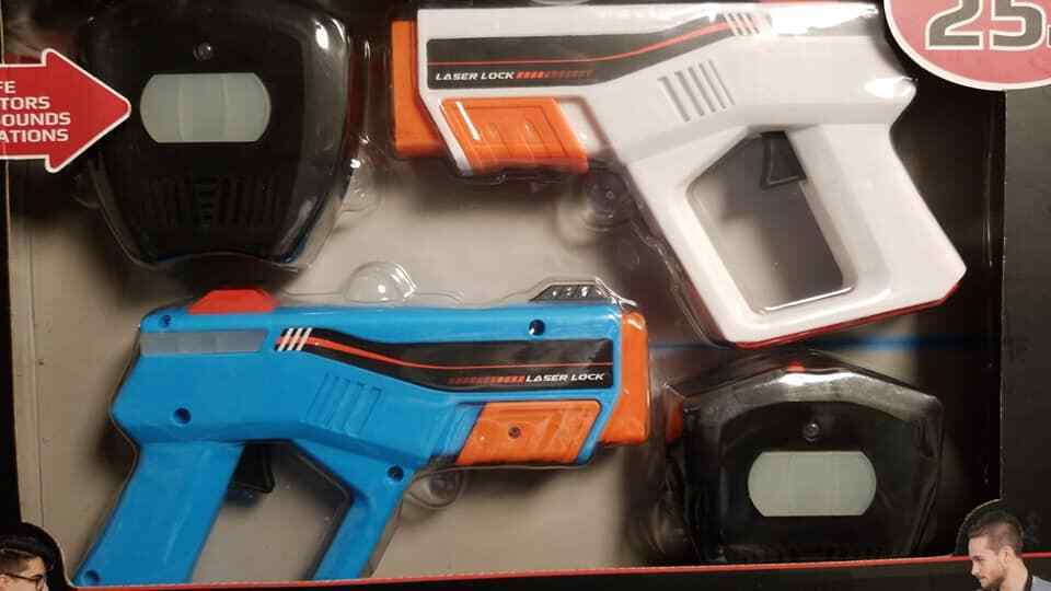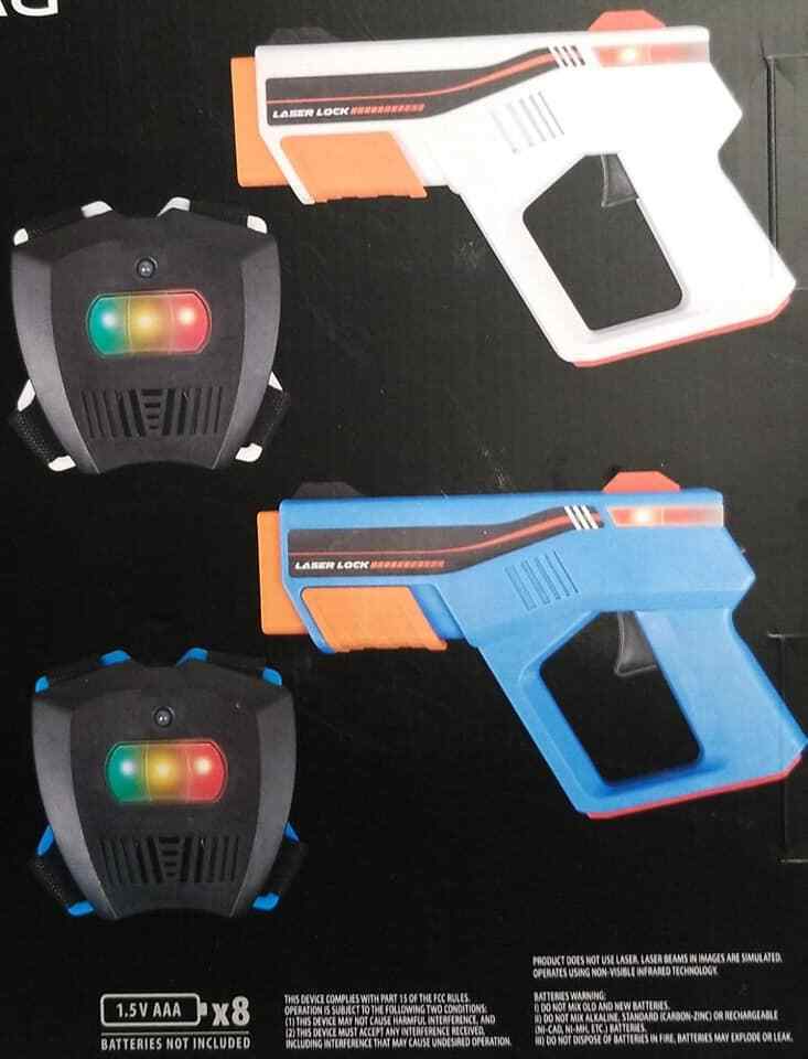 2 player laser tag with target shootout put down the game controller and pick up your laser blaster with 2 blasters that shoot over 25 feet and 2 targets complete with lights and sound, you are sure to have a blast playing with friends and family. Includes 2 laser guns- add more for more fun. ...or play target shootout.