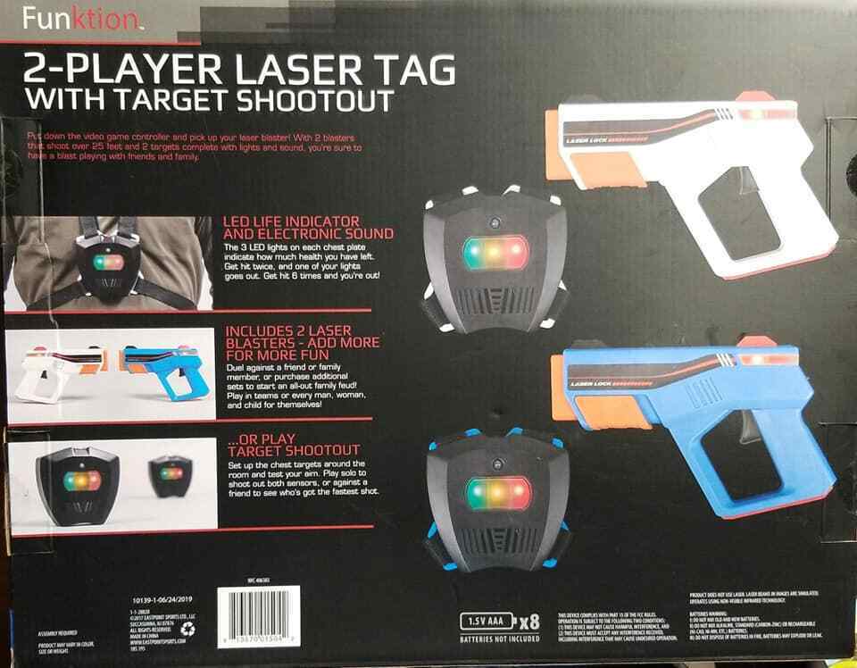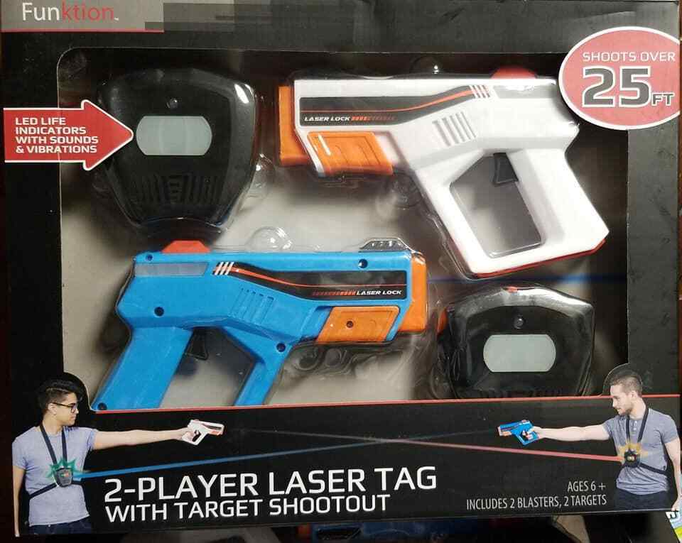 - FUNKTION 2-Player Laser Tag with Target Shootout shoots over 25FT (LOC TUBL-47
