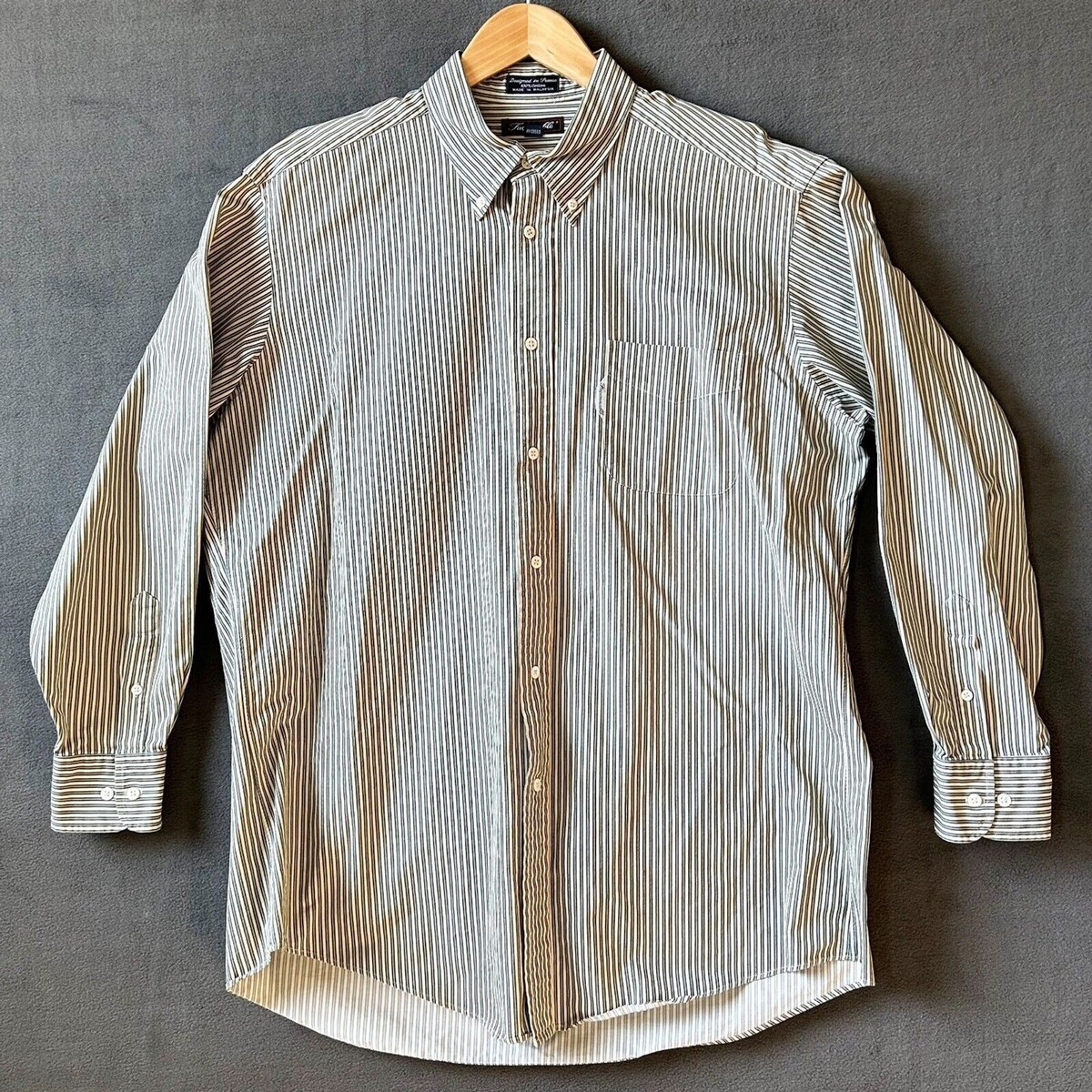 Faconnable Striped Cotton Button Shirt Long Sleeve Yellow Blue-Men's Size 17.5L