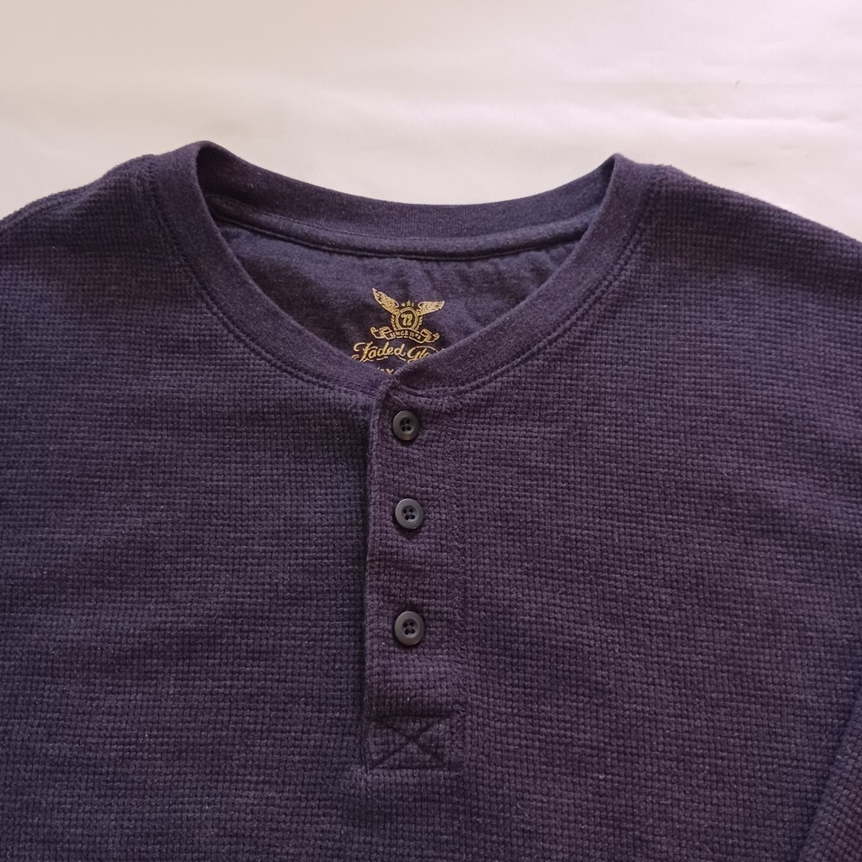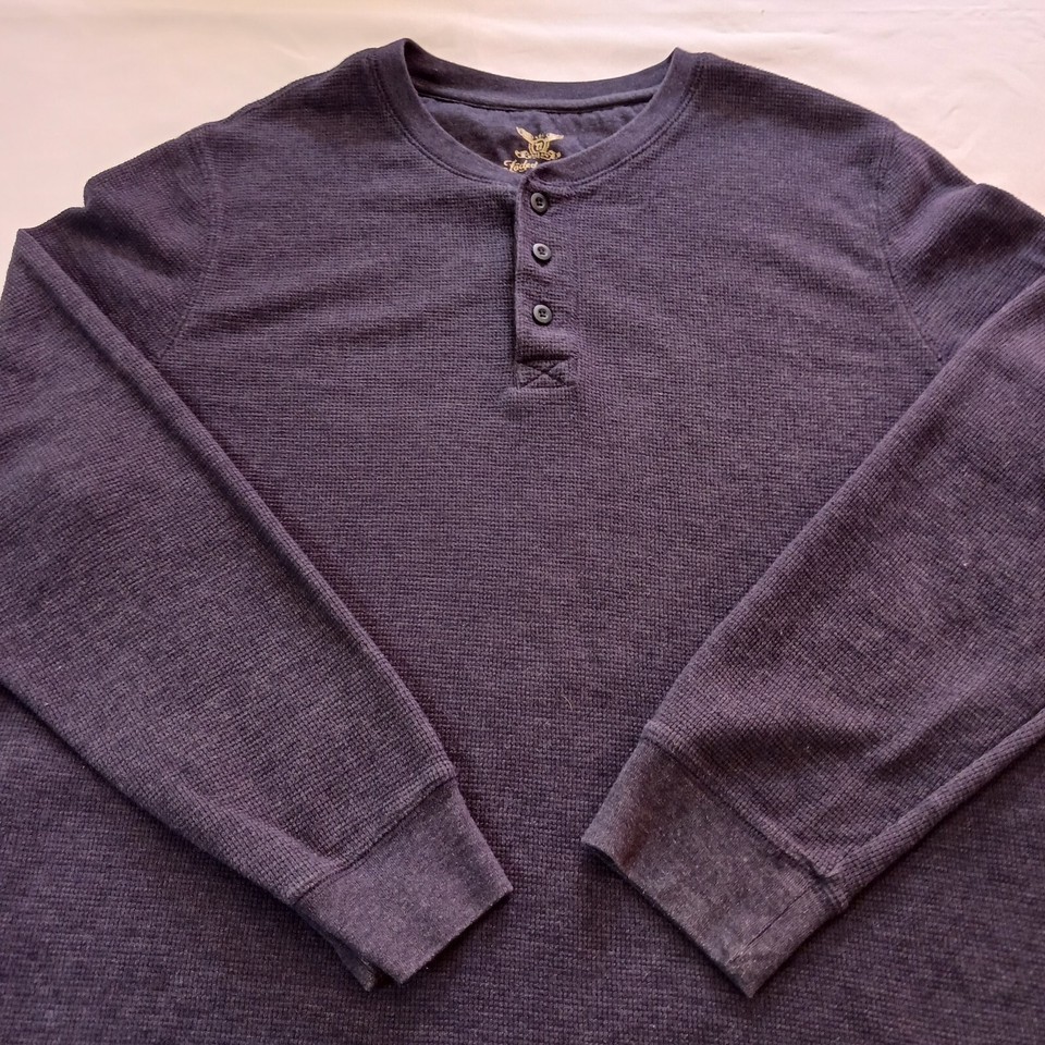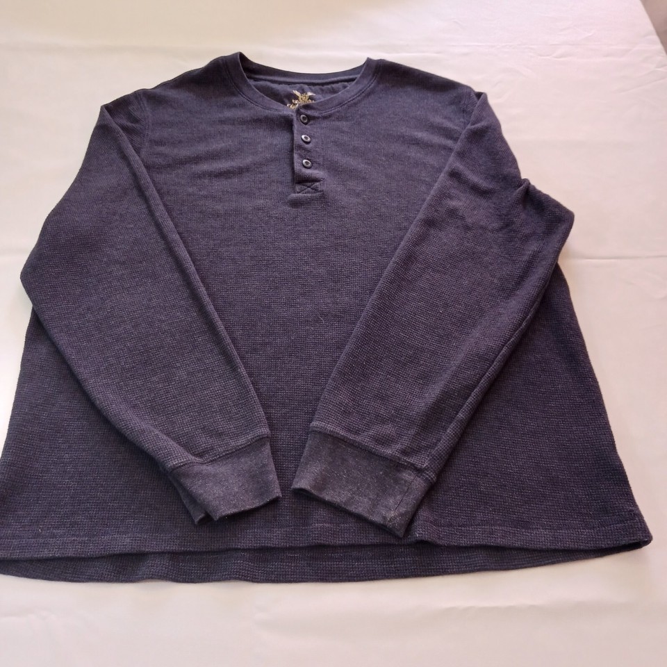 - Faded Glory Mens Blue Cotton Blend Thermal Sweatshirt Button Knit Crew 2XL 50-52