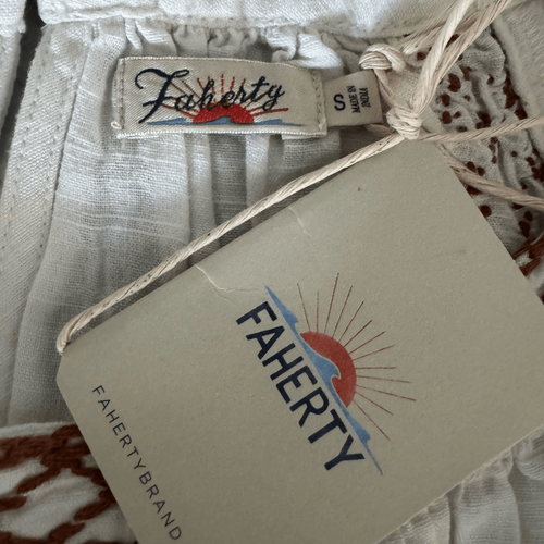 Faherty Arles Embroidered Long Sleeve Top, Renaissance, Beige, Small (4/6), NWT