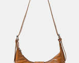 This stylish Western-inspired crossbody bag features premium brown leather construction with eye-catching silver stud embellishments. The curved hobo design offers ample storage space while maintaining a sleek silhouette. Key highlights include an adjustable leather strap for comfortable crossbody wear, decorative buckle detailing, and durable metal hardware. The rich cognac brown leather provides a luxurious feel and versatile styling options. Perfect for casual outings or adding a bohemian touch to any outfit, this bag combines functionality with distinctive Western flair through its studded accents and curved design.