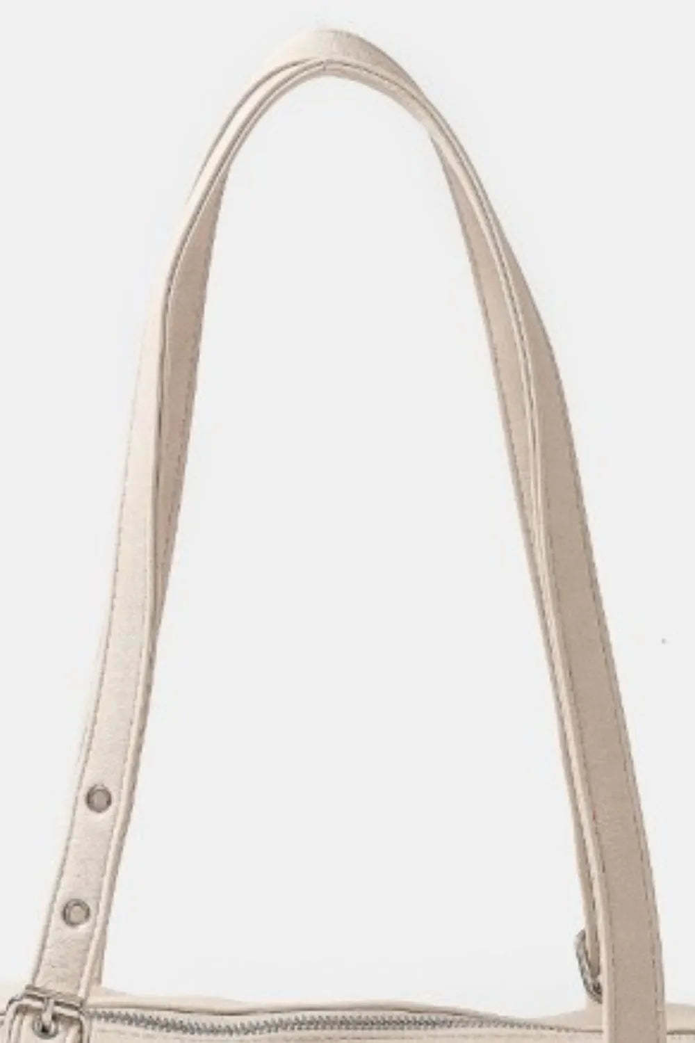 This elegant nude leather handbag combines timeless sophistication with practical functionality. Crafted from premium quality leather in a versatile beige tone, it features dual adjustable shoulder straps with polished metal hardware for customizable comfort. The spacious rectangular design offers ample storage while maintaining a sleek silhouette. Decorative side tassels and gold-tone accents add refined details that elevate any ensemble. Perfect for professional settings or casual outings, this handbag's neutral palette seamlessly complements any wardrobe while the durable leather construction ensures long-lasting style and functionality.
