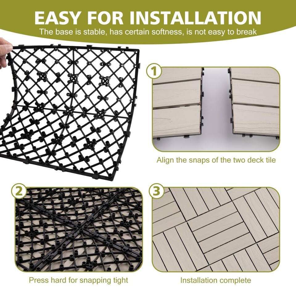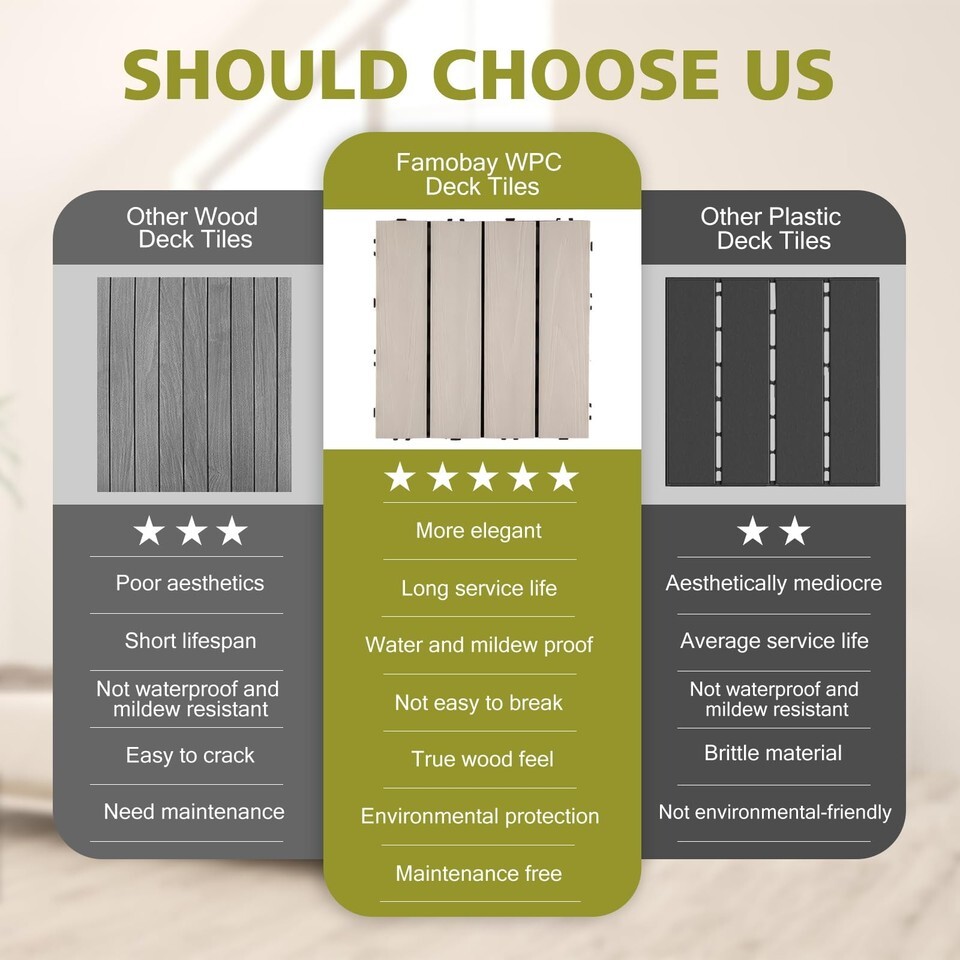 - Famobay WPC Patio Deck Tiles 3D Organic White 12x12in 6pcs Durable Waterproof