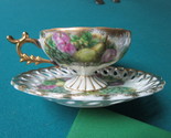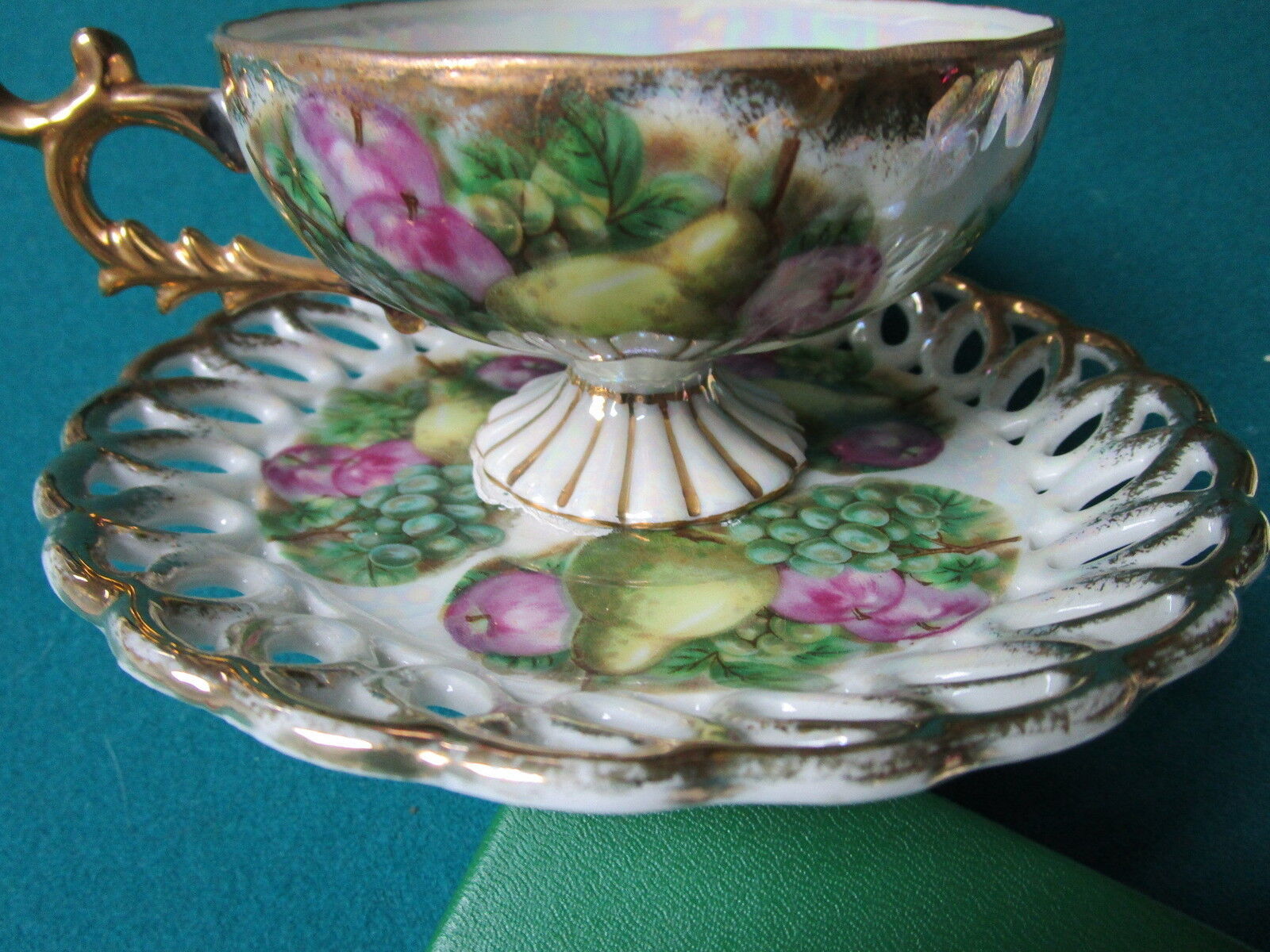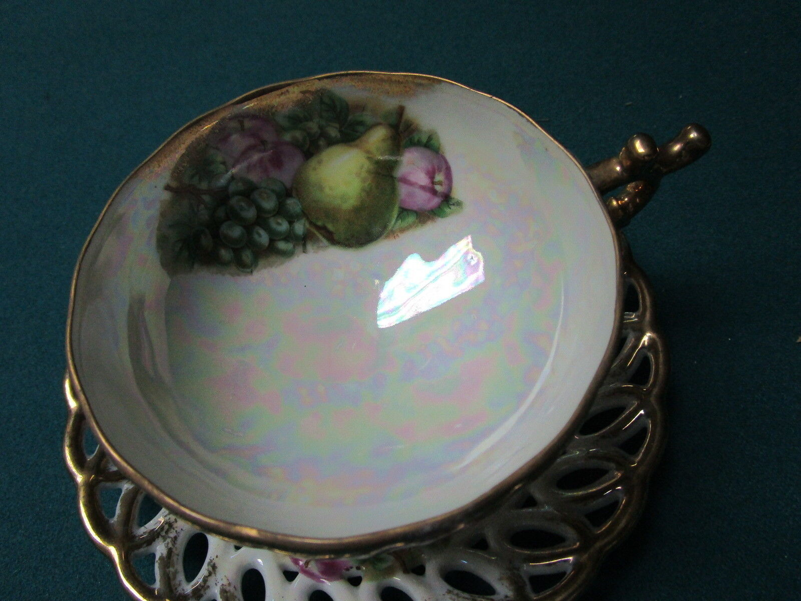 - Fan Crest Japan lusterware reticulated cup/saucer attached,roses,gorgeous[a*5-b1