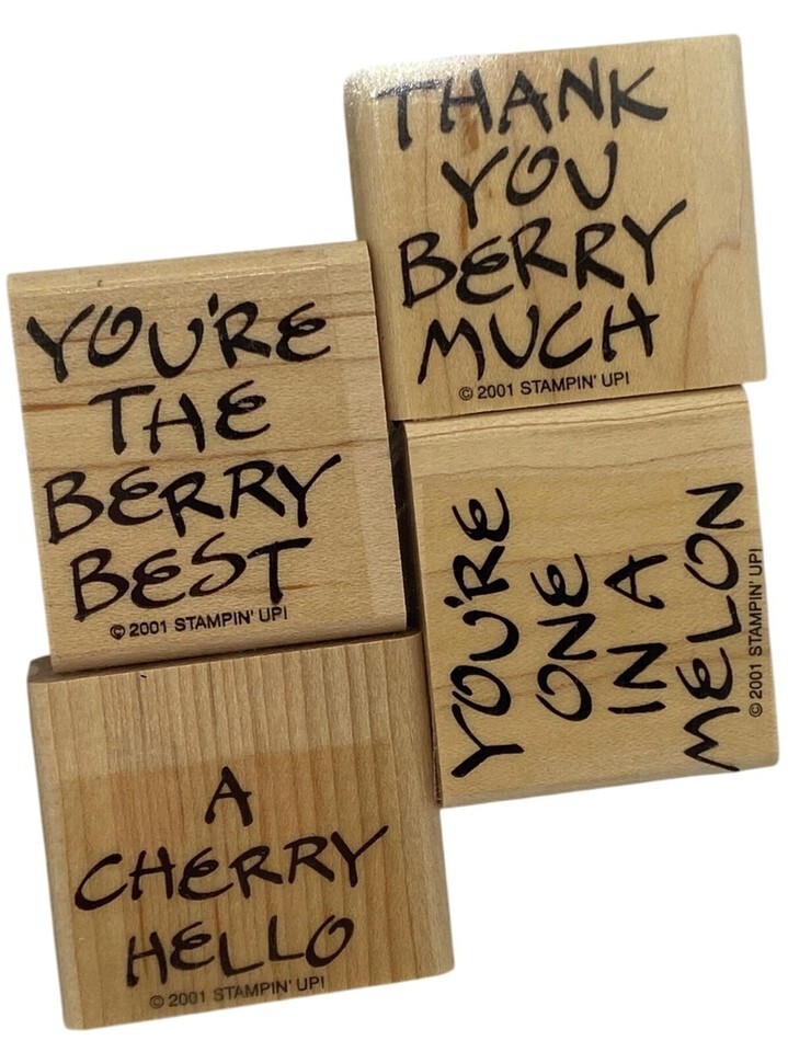 - Fanciful Favorites Stampin Up! 2001 Wood-Mounted Stamp Sets Fruit & Thank You Ph