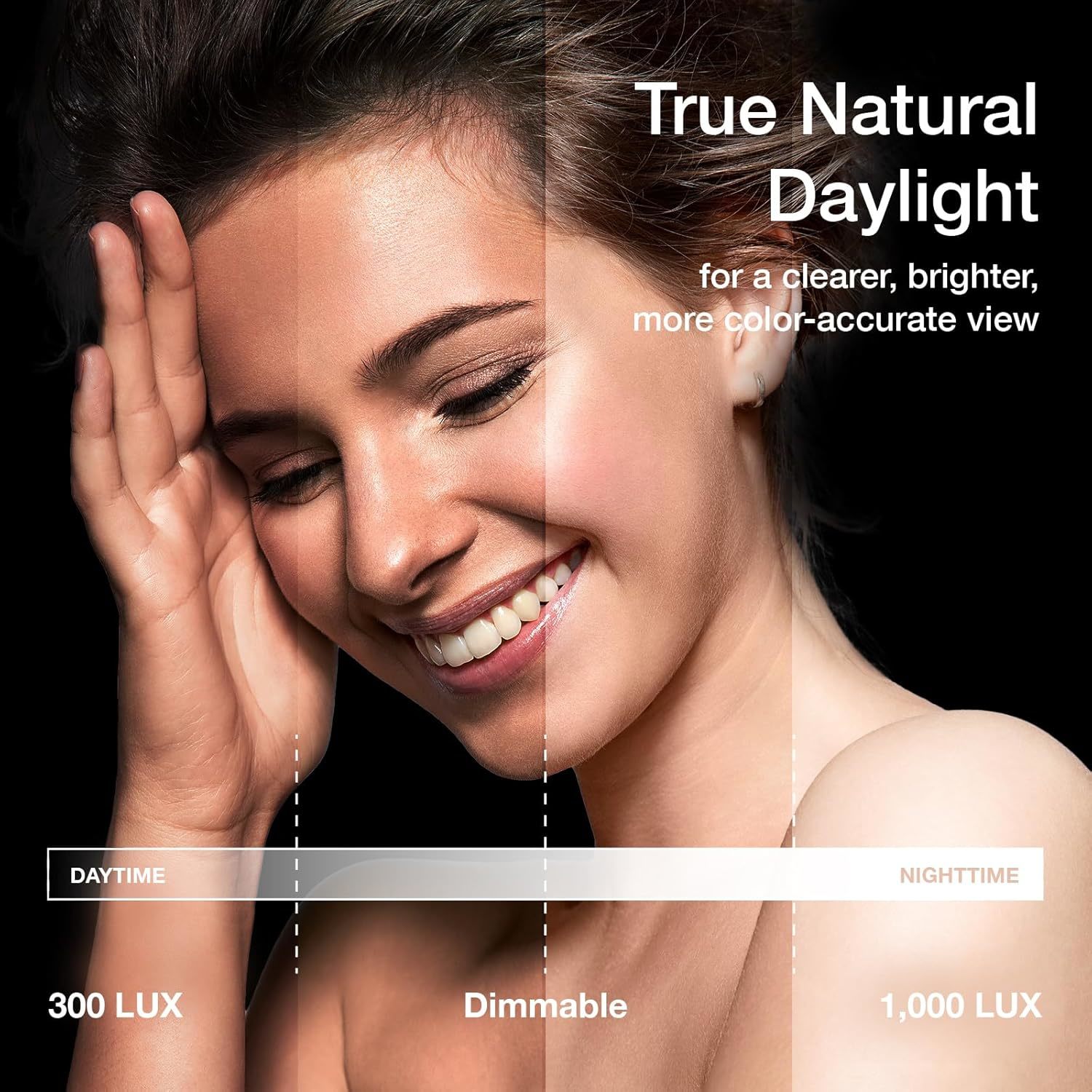 You asked. We listened. We created a makeup mirror that is 20% larger than similar models. With an industry-leading 13.8 inch wide 3-panel mirror, our premium glass offers no distortion and is crystal clear from side to side providing you with a true-to-life color corrected view.