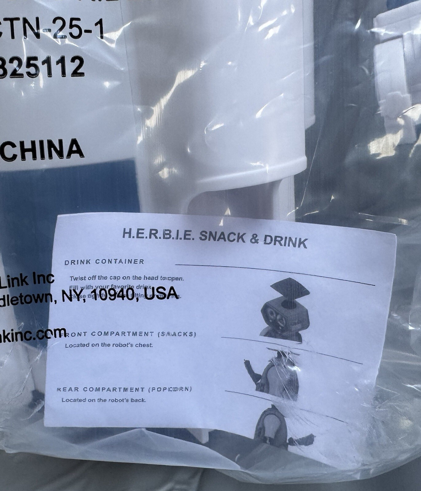 Brand new, in hand, ready to ship. Includes Herbie, straw, and instruction sheet. Plays the Fantastic Four theme and projects a Fantastic Four hologram from its eye. This robot could be hackable if you know how. No cancellations or returns allowed. Ships professionally packed and insured. I?ve got more Fantastic Four for sale. See my other auctions now.