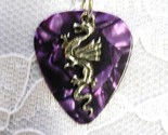 NEW PURPLE CELLULOID GUITAR PICK WITH A USA HAND CAST PEWTER CLASSIC DRAGON CHARM PENDANT NECKLACE