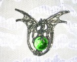 - FANTASY SPINY WING DRAGON GREEN GLASS ORB BALL PEWTER PENDANT ADJ CORD NECKLACE