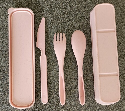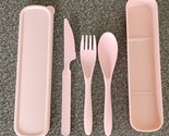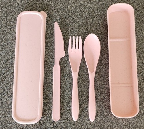 - Farielyn ~ Wheat Straw Fiber ~ 3 Pc. Cutlery Set w/Storage Box ~ PINK SPECKLED