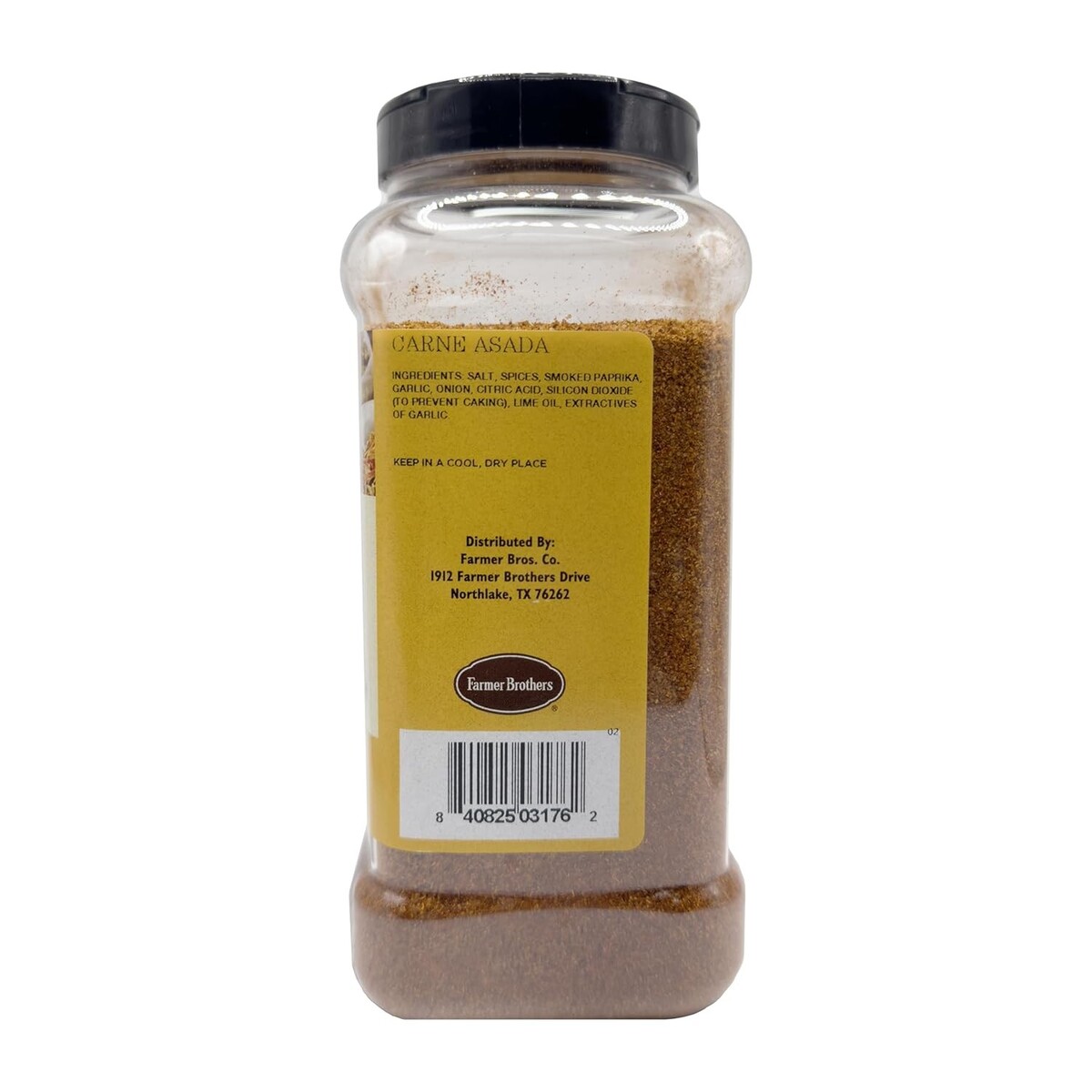 Bring bold Latin flavor to your kitchen with Farmer Brothers Carne Asada Spice Blend. Crafted with a balanced mix of authentic spices, this versatile seasoning enhances beef, chicken, and vegetables with a smoky, savory taste that captures the spirit of traditional carne asada. Use it as a rub, marinade base, or tabletop seasoning to elevate every meal with effortless restaurant-quality results. Packaged in a sturdy 24.87 oz plastic container, it?s ideal for foodservice, restaurants, and home chefs who love authentic grilled flavor.