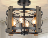 Farmhouse Rustic Light Fixture Ceiling Mount, Semi Flush Mount Ceiling Light Fixture, 4-Light Black Industrial Retro Washed Ceiling Light for Kitchen Dining Room Bedroom Hallway Bathroom