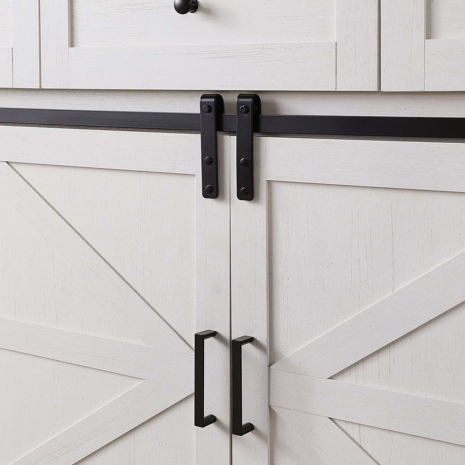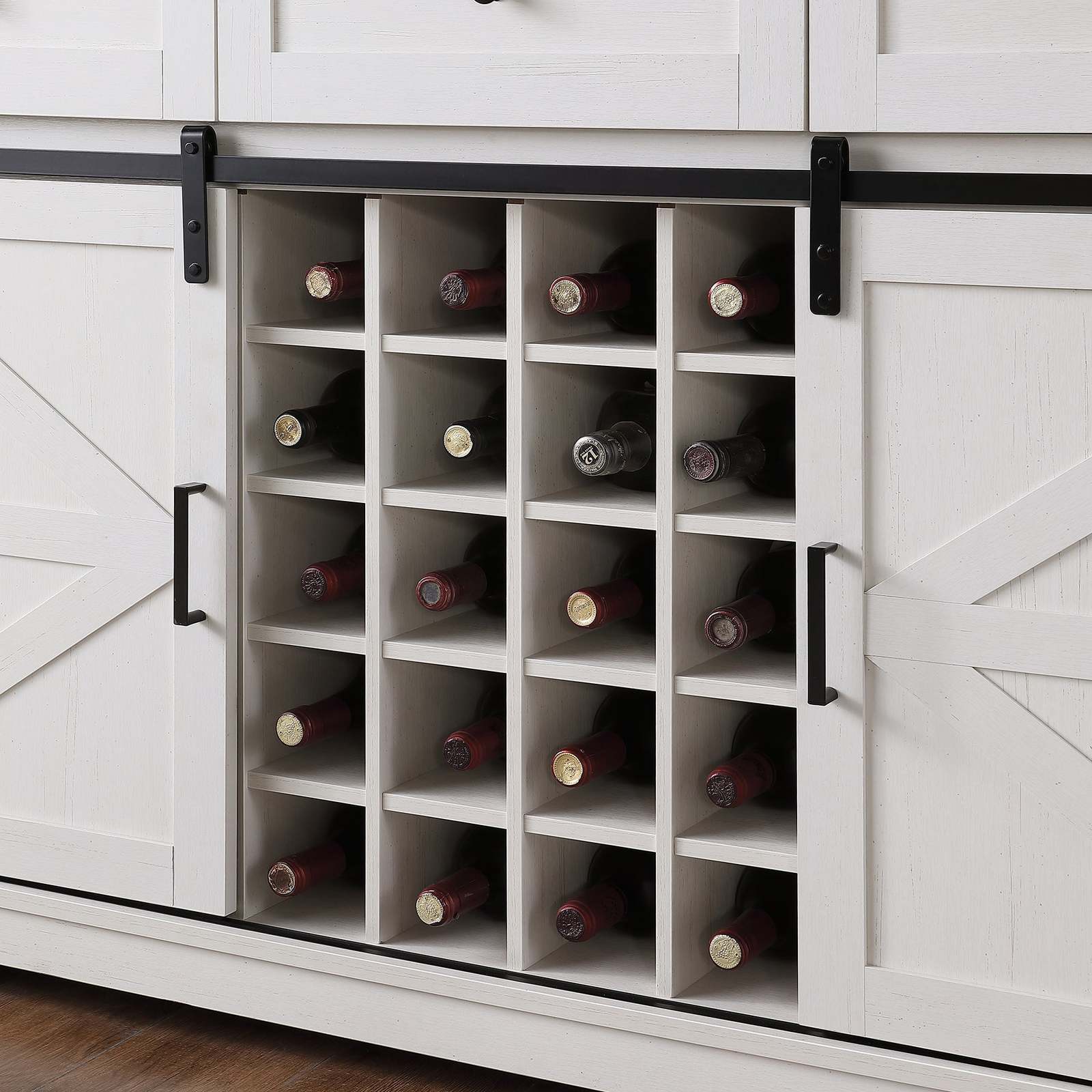 SLIDING BARN DOORS: Easy access to the home bar cabinet via sliding metal track, designed for smooth and quiet slide. Allows you to hide or reveal this home bar furniture freely. Flexibly divide it into different storage and display area.