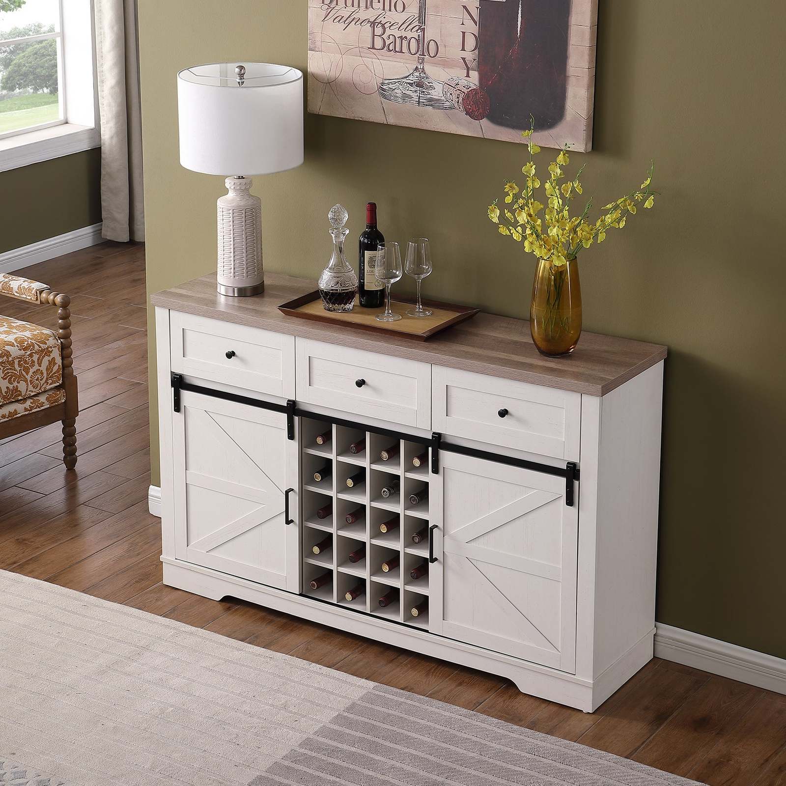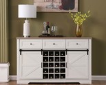 - Farmhouse Wine Bar Cabinet 58"-Rustic Buffet Sideboard w/Barn Door
