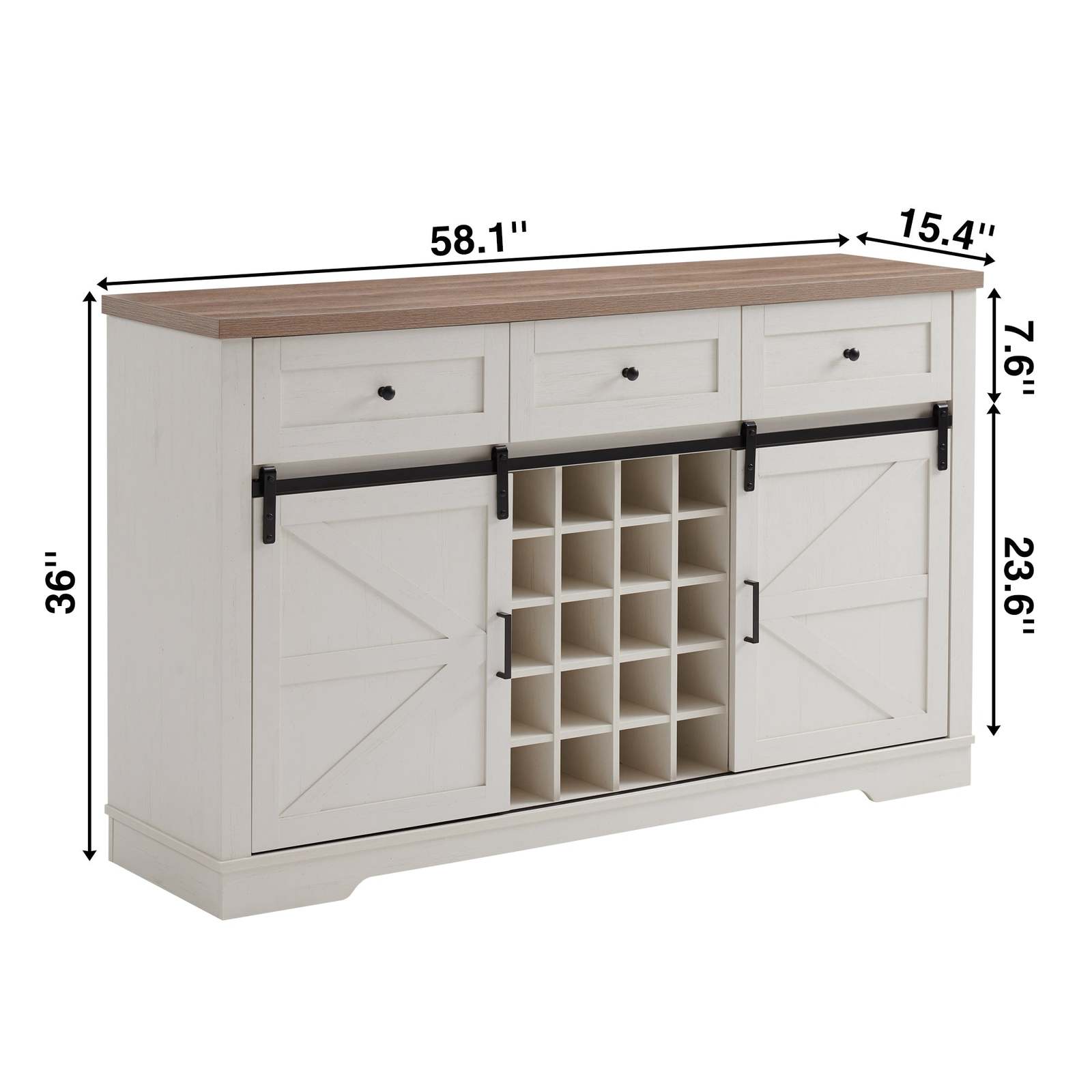 Farmhouse Wine Bar Cabinet 58"-Rustic Buffet Sideboard w/Barn Door
