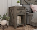 Complete your bedroom with the Farmington Nightstand. Inspired by the farmhouse style, this rustic Nightstand resembles a wooden barn door and adds a unique touch to your space. This sturdy Nightstand is constructed of laminated particleboard and MDF. The textured brown with gray undertones finish has an old reclaimed wood appearance that has been further enhanced with an oil rubbed bronze pull. Not only is this Nightstand incredibly stylish, but it's also very practical, with concealed and open storage to keep your room organized. Use the top surface for your reading lamp and keep glasses and charger in the pull-out drawer. The cubby is the perfect place to keep magazines or books for a little nighttime reading. The Nightstand ships flat to your door and requires assembly. Two adults are recommended for assembly. Once assembled, the Nightstand measures to be 24.41'H x 17.80'W x 17'D.