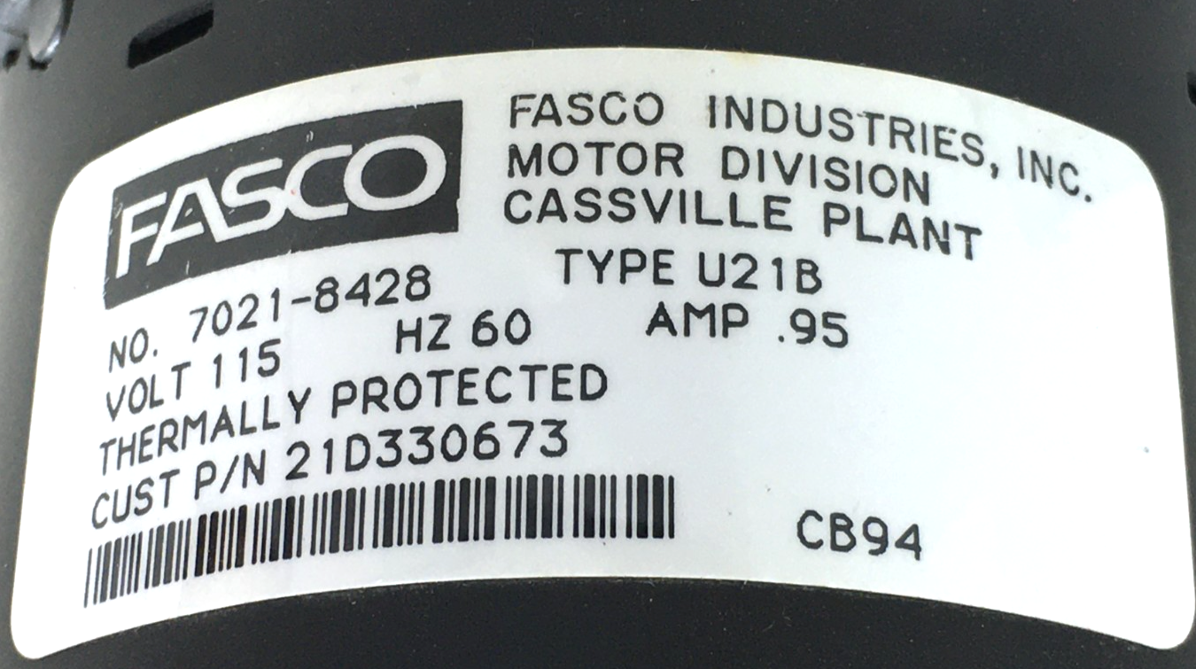 This is Fasco Draft Inducer Assembly 7021-8428 21D330673 115V used part.