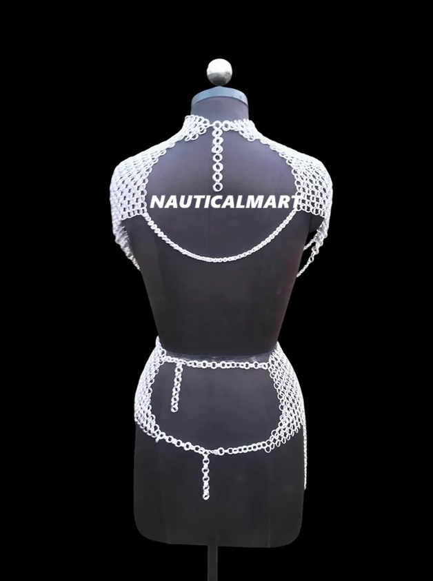 - Fashionable Medieval Handmade Aluminum Chainmail Top and Skirt Set - Medieval Co