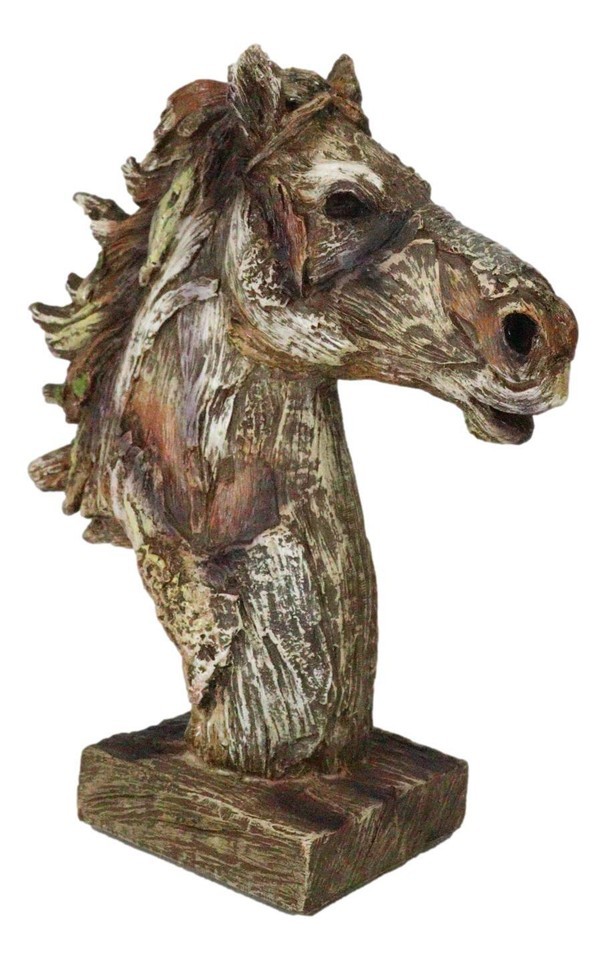 ? Add life and rustic charm to your rooms with our beautifully cast Mustang Horse desktop sculpture. This unique piece of equestrian decor is cast in resin, hand painted by our artisans to resemble aged driftwood. Every horse lover's home or barn should have one.